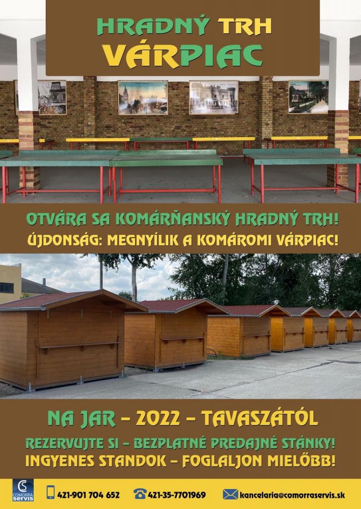 KOMÁRŇANSKÝ COMORRA SERVIS VÁM OZNAMUJE, ŽE OD SEPTEMBRA MÁTE MOŽNOSŤ NAHLÁSIŤ SVOJ NÁROK NA BEZPLATNÝ PRENÁJOM PREDAJNÝCH STÁNKOV NA NOVOM HRADNOM TRHU.