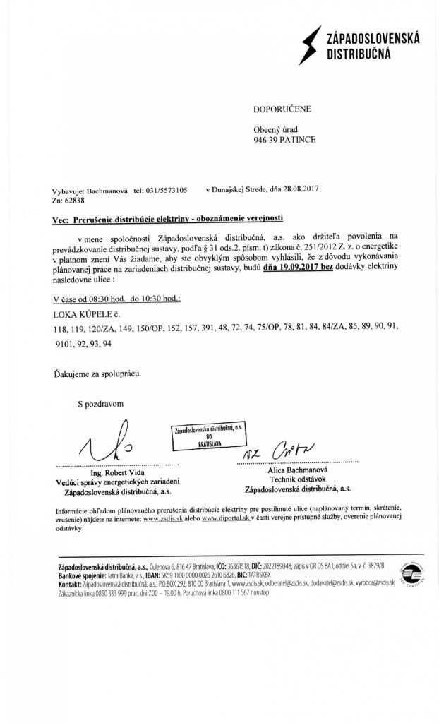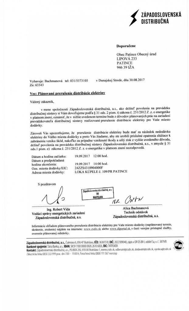 Prerušenie distr. elek. Prerušenie distr. elek.