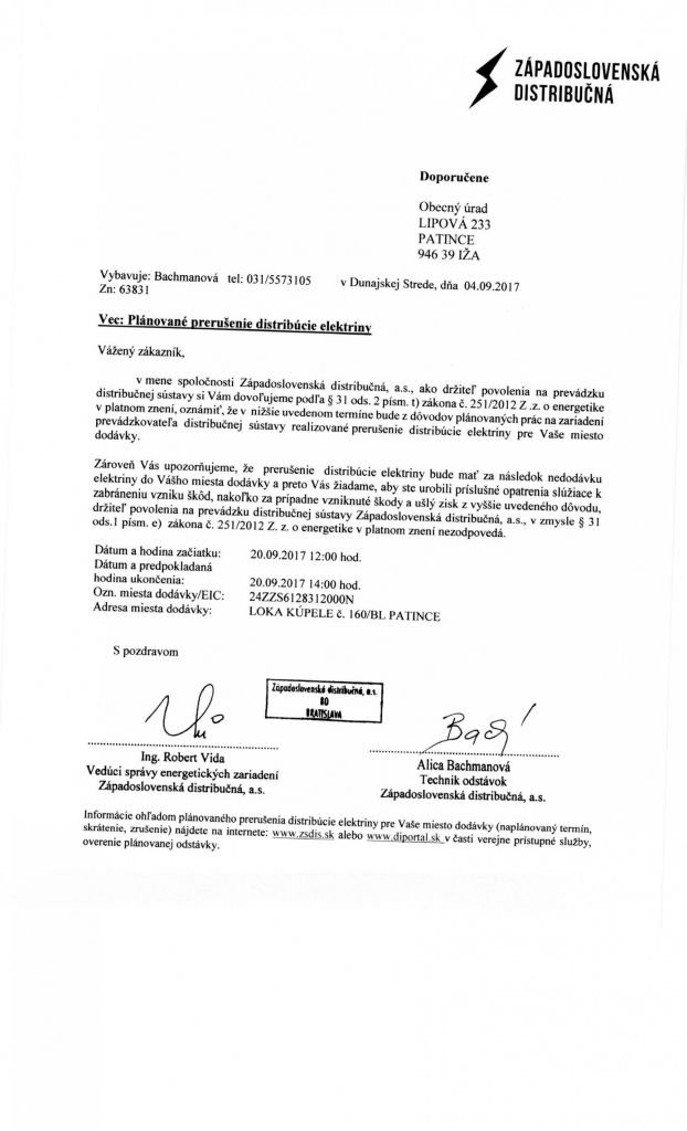 Prerušenie distr. elek. Prerušenie distr. elek.